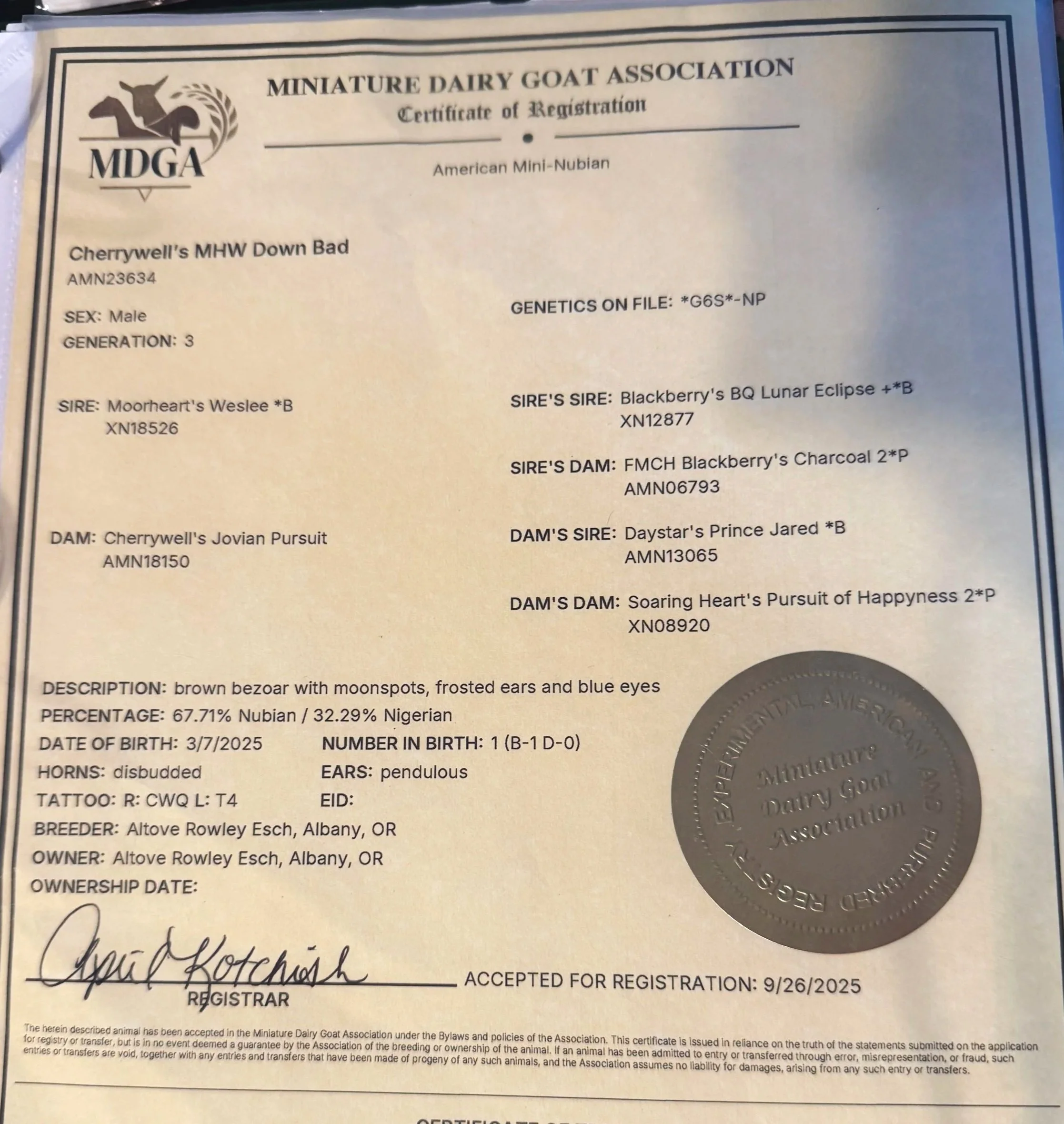 Gym is my keeper buckling out of our stunning Jovie - who I am inordinately fond of. Jovie hasn’t fully matured yet, but I can’t help but feel like she’s going to be a star. Gym is a gorgeous little buck with a super sweet and laid back personality, and I have a great feeling about him as well. If Jovie earns her milk star this year, Gym will inherit his *B.