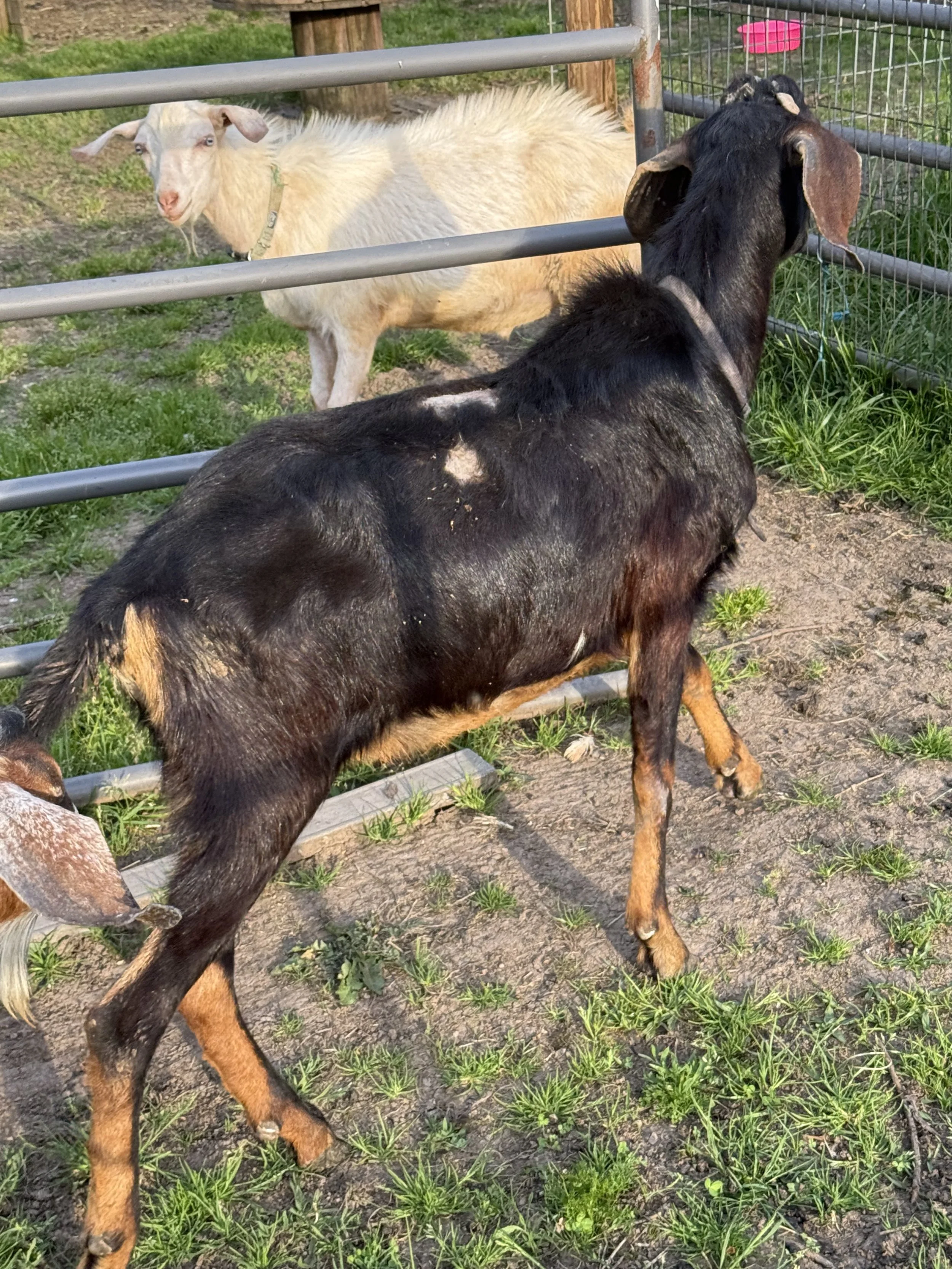 Midnight came to us sort of randomly when we needed a mature Nubian buck after our linear appraisal in 2024. He is young and still in his awkward phase, but he’s a handsome and elegant guy with a lovely pedigree that fits in well with our program. He is skittish, but gentle when handled and has a very quiet personality.