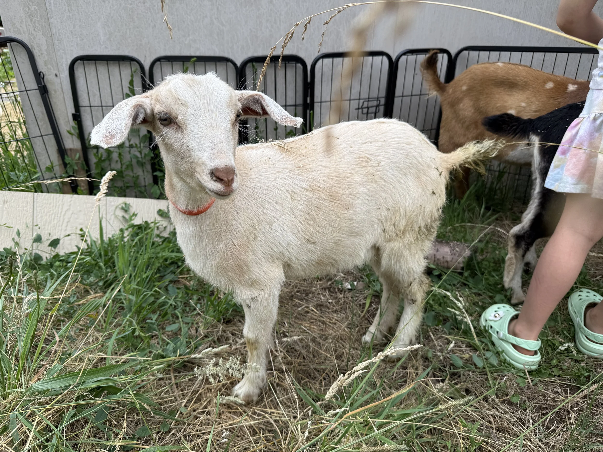 Sallie came to us from our friend Jena at Urban Acres as a result of an “oops” when one of her Nubian show string girls had a clandestine affair with one of her Nigerian bucks. Typically, Jena only breeds first fresheners to Nigerians for 50/50 offspring, but this was a happy accident for us. Sallie brings in some different Nigerian genetics for us, and she is gorgeous!